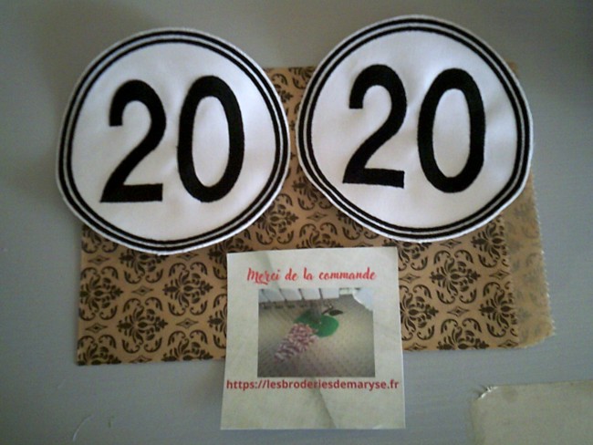 Veuillez choisir avec le nuancier : la couleur de la broderie & la dimension & le chiffre