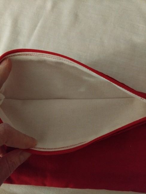 Pochette en tissu rouge à fermeture éclair patch croix basque brodé cousu sur la pochette