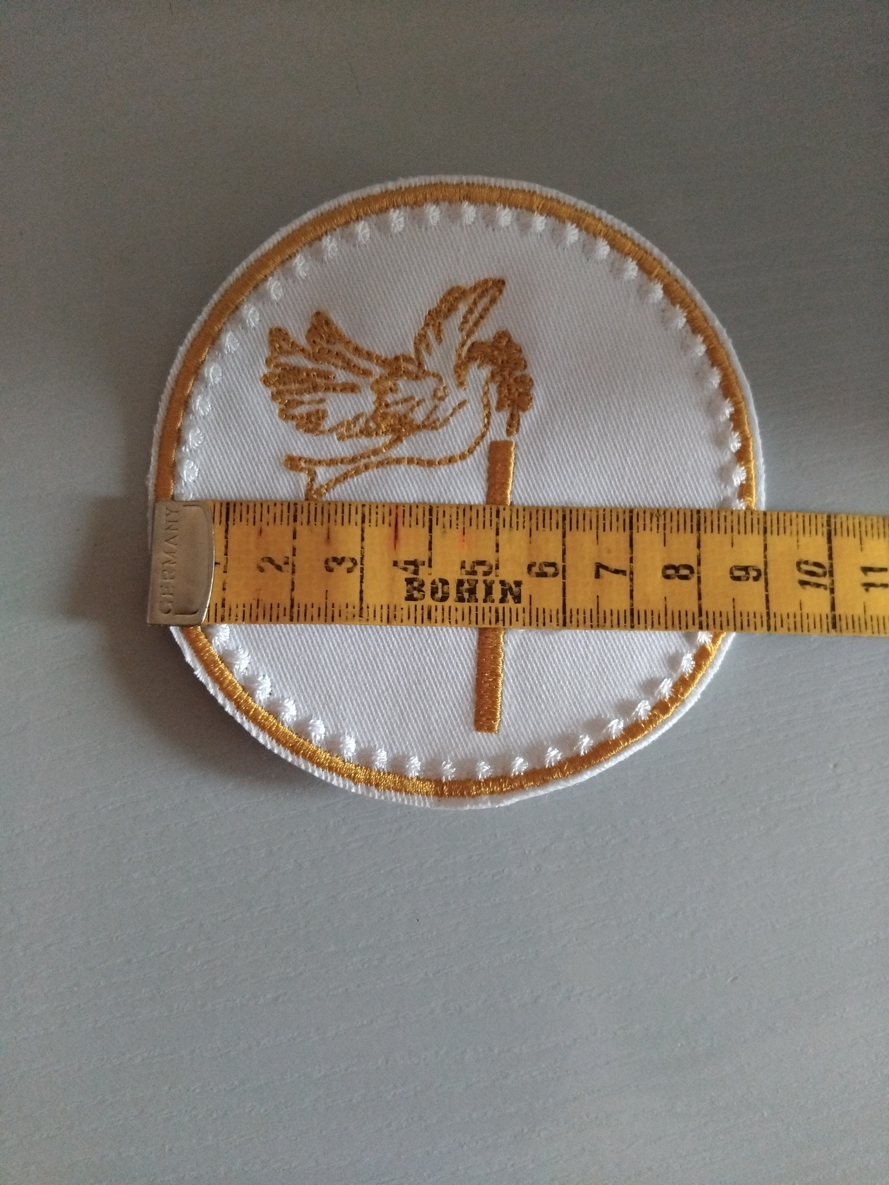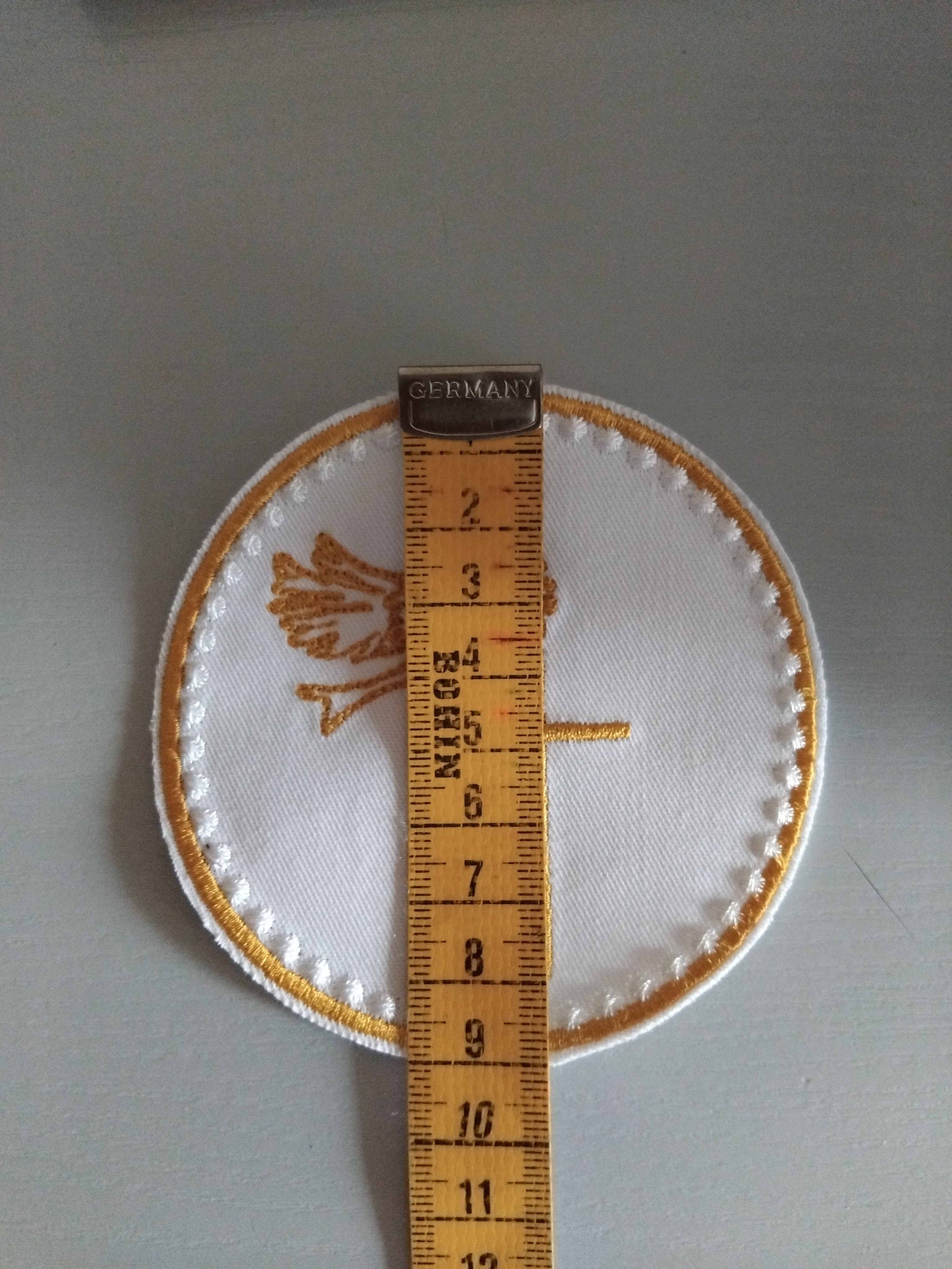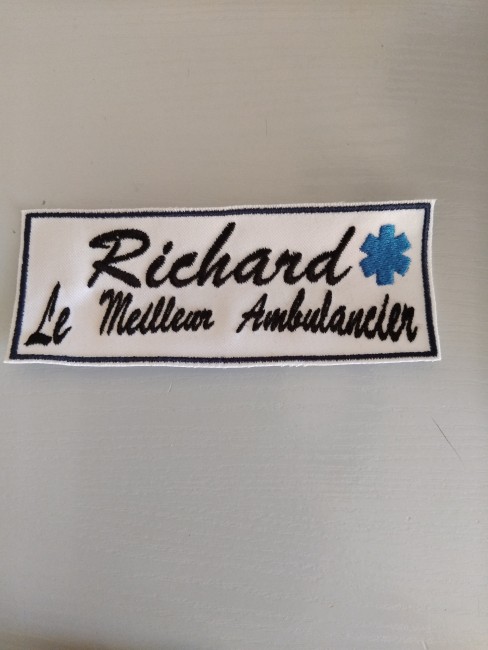 Patch en tissu blanc ,contour brodé en jaune ocre