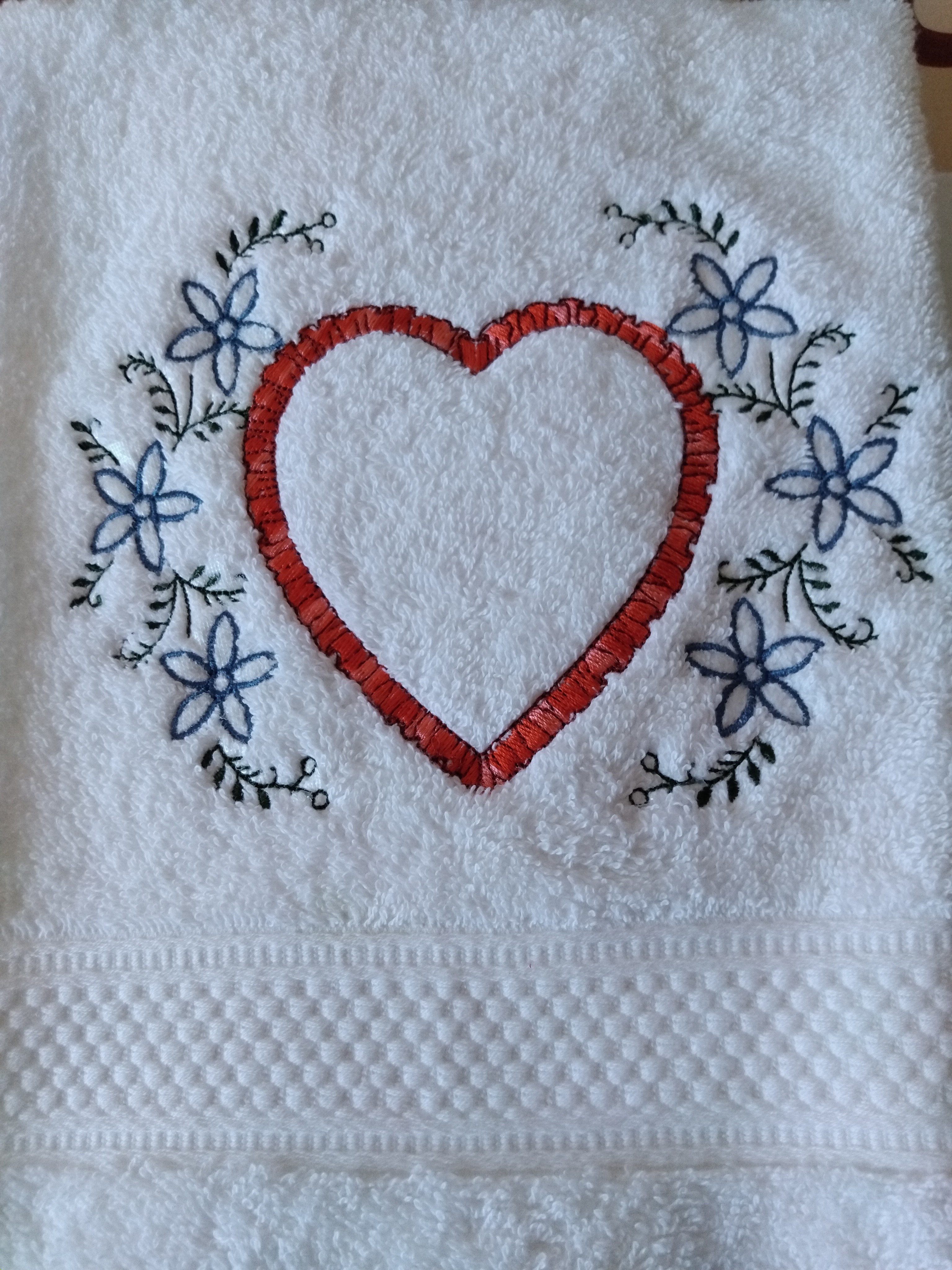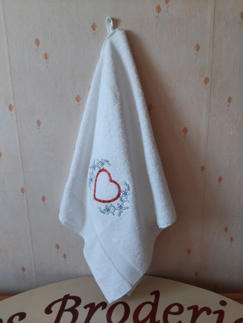 Serviette éponge coeur & fleurs brodé