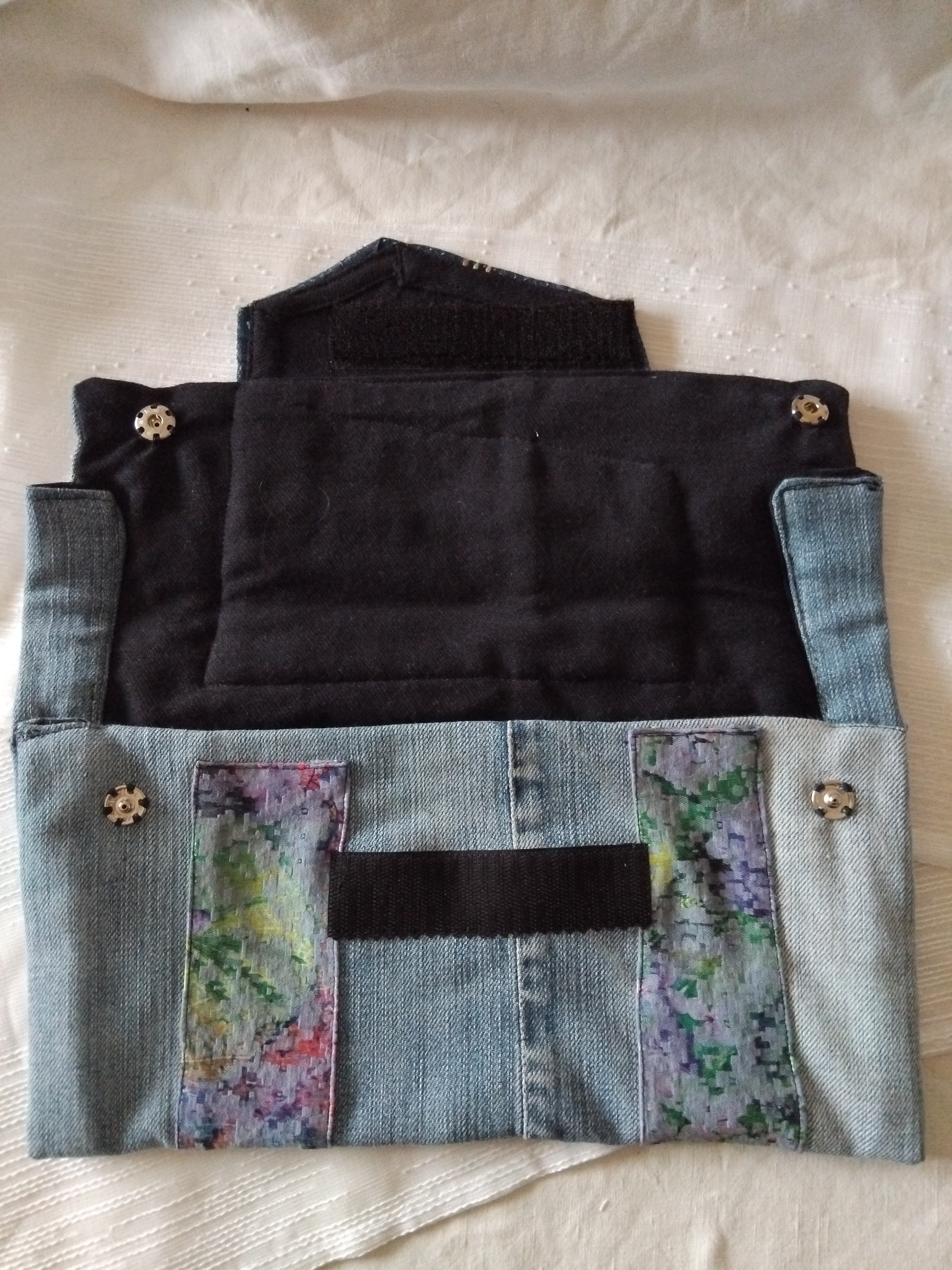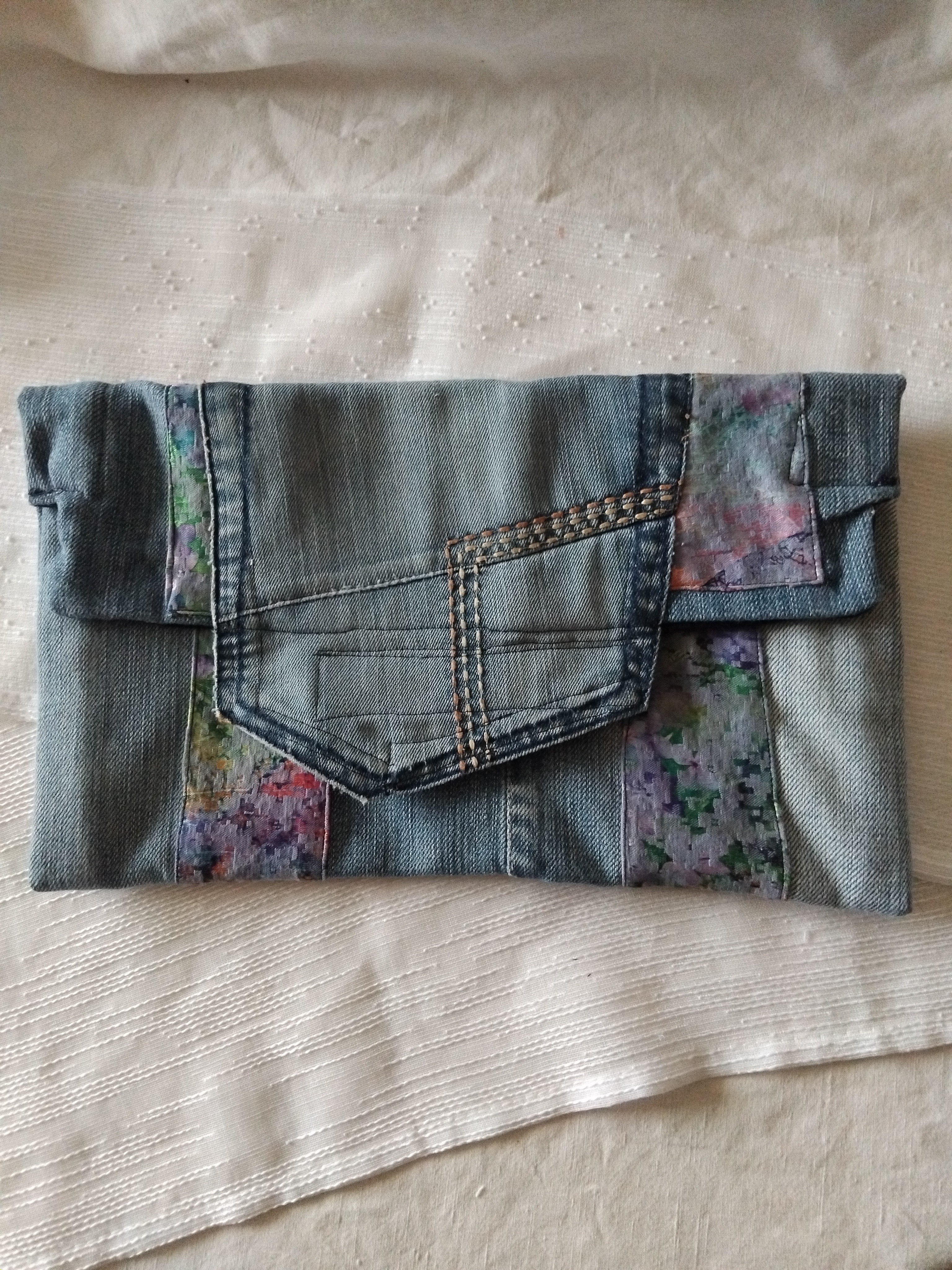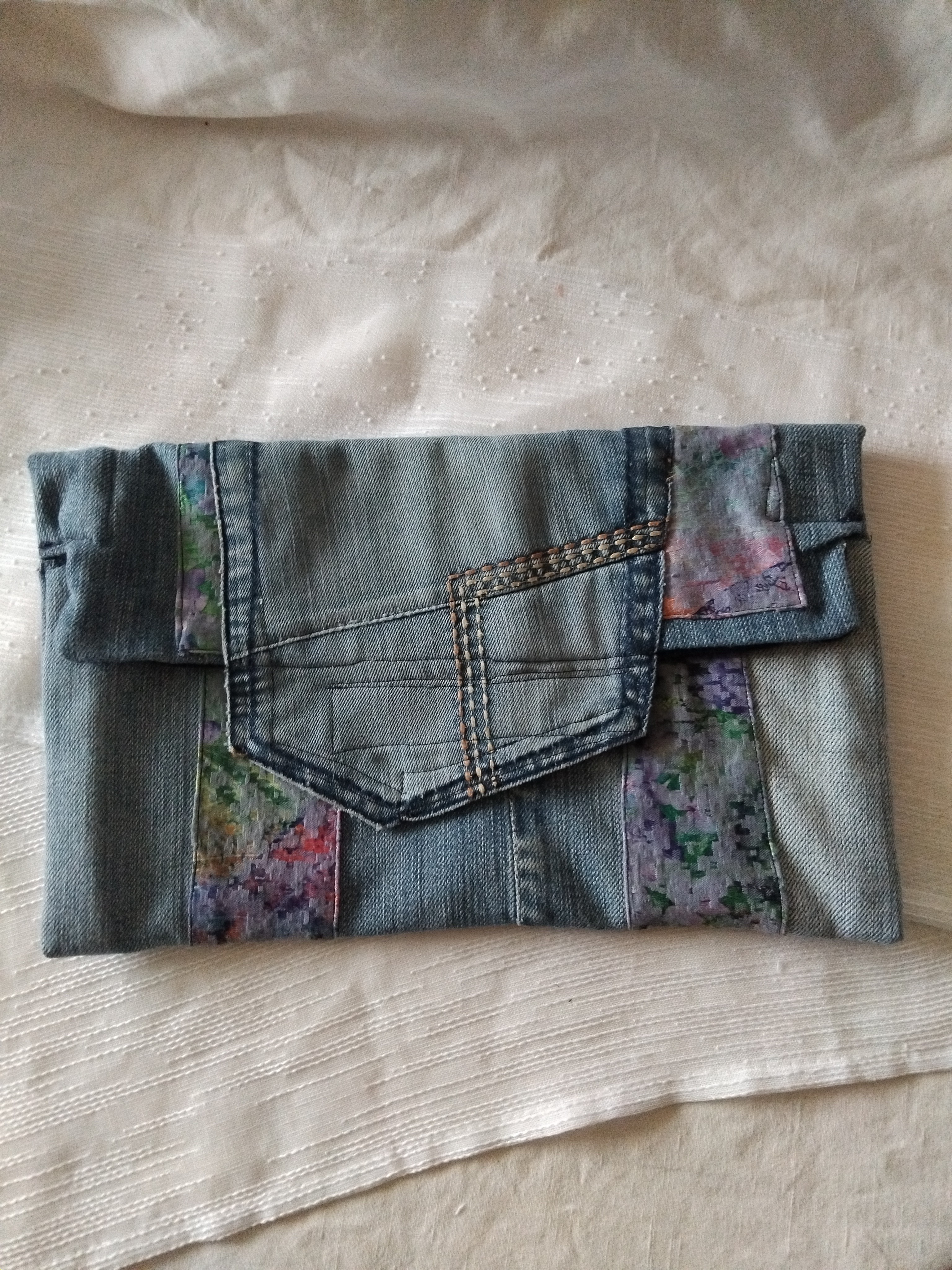 Pochette en tissu jean recyclé fabrication à partir d'un pantalon