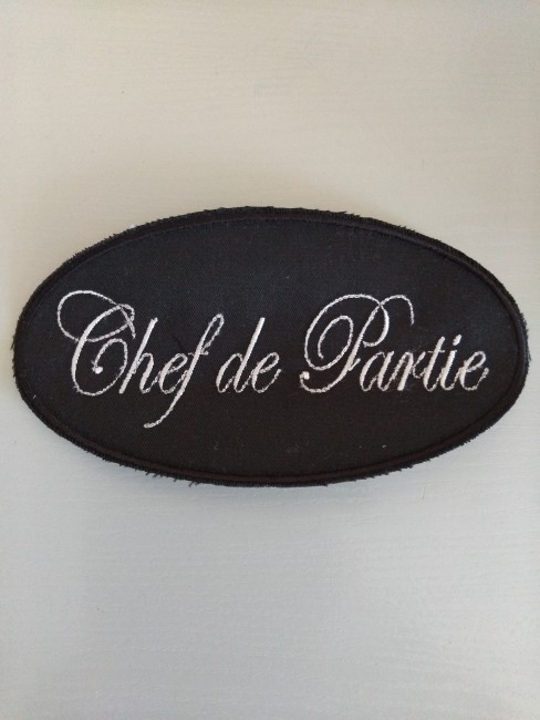 Patch Chef de Partie brodé à coudre -customisé-création en couture- brodé en france-mercerie patch-chef de partie cuisine-vêtement de cuisine